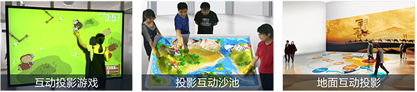 互動(dòng)投影系統(tǒng)是一種新型的多媒體展示平臺。采用先進(jìn)的計(jì)算機(jī)視覺技術(shù)和投影顯示技術(shù)來營造一種奇幻動(dòng)感的交互體驗(yàn)。與傳統(tǒng)的觸摸屏不同,不需要其它介質(zhì),用戶即可以直接食用腳或手與投影區(qū)域上的虛擬場景進(jìn)行交互?;?dòng)投影系統(tǒng)具有很高的新奇性和觀賞性,可以很好的起到活躍展廳氣氛,增加展覽科技含量,提高展覽現(xiàn)場人氣度的目標(biāo)。