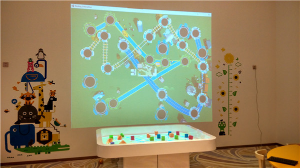 達達樂園之積木連萌操作方便,硬件配置簡單,只需要積木、體感交互設備與臺面相互配合,即可創造出一片獨特的光影天地。臺面大小可根據空間定制,也可以配合達達樂園系列其它設備共同構建一個游樂室,最大程度上降低經營成本。