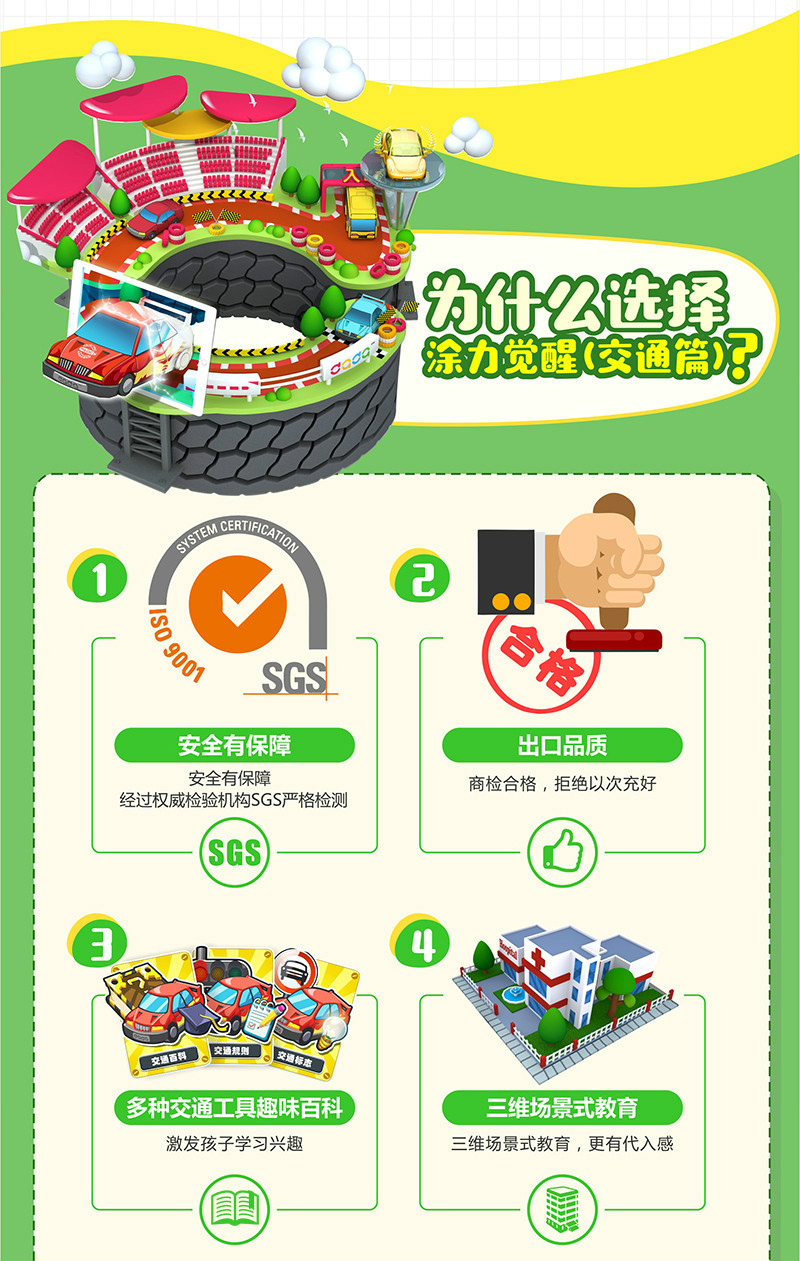 《涂力覺醒交通篇》是聚象科技推出的《涂力覺醒》系列AR涂色娛教卡片中的一款產品。適合3-9歲的孩子學習。有別去傳統的涂色卡玩具,孩子通過最富創造性的個性涂力,把自己涂鴉的二維平面作品覺醒成獨一無二的三維交通工具。